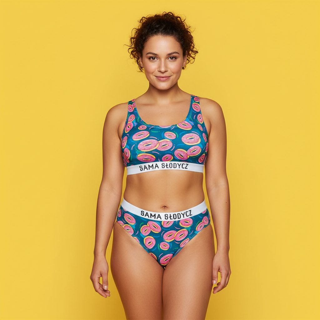 Kolorowy zestaw stanik sportowy + wygodne majtki bawełniane w PĄCZKI